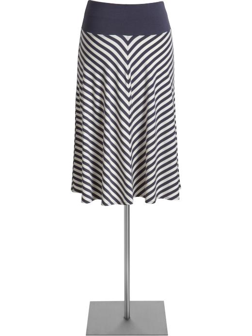 I was there thanks to GroupOn’s $20 (for $10) certificate. I’ve been wanting a long striped skirt, but I’m super petite, so I thought this would be a good compromise. But I can’t really figure out what to pair it with. The striped appear cream and grey, but the website says the color is blue. So I can’t wear it with a white shirt. I’d also like to wear it to work (pretty casual workplace, but I don’t like to look sloppy or slutty).