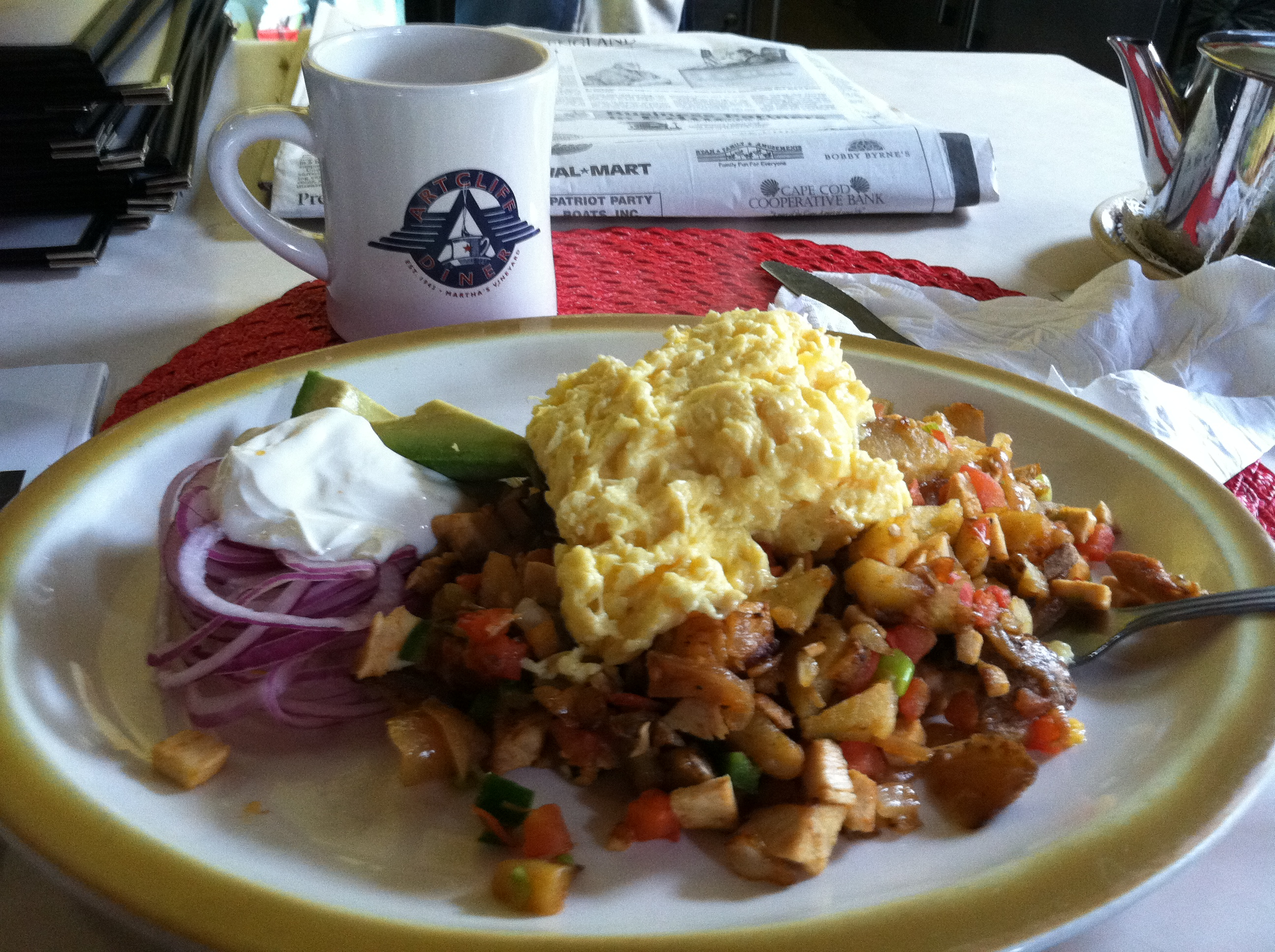 Vineyard Haven is home to the awesome ArtCliff Diner, which is open from 7 am until 2 pm and serves breakfast that is delicious – homey but with enough of a twist to put it miles above Cracker Barrel and other chains. They have a real chef running things. They have specials like seafood risotto. We went their twice to eat and once on our way to catch the ferry home to grab giant scones to go. They make sweet potato scones as big as a salad plate and as light as a cloud, with mouthwatering honey butter. I’m seriously making myself sad just thinking about not getting to eat there again.