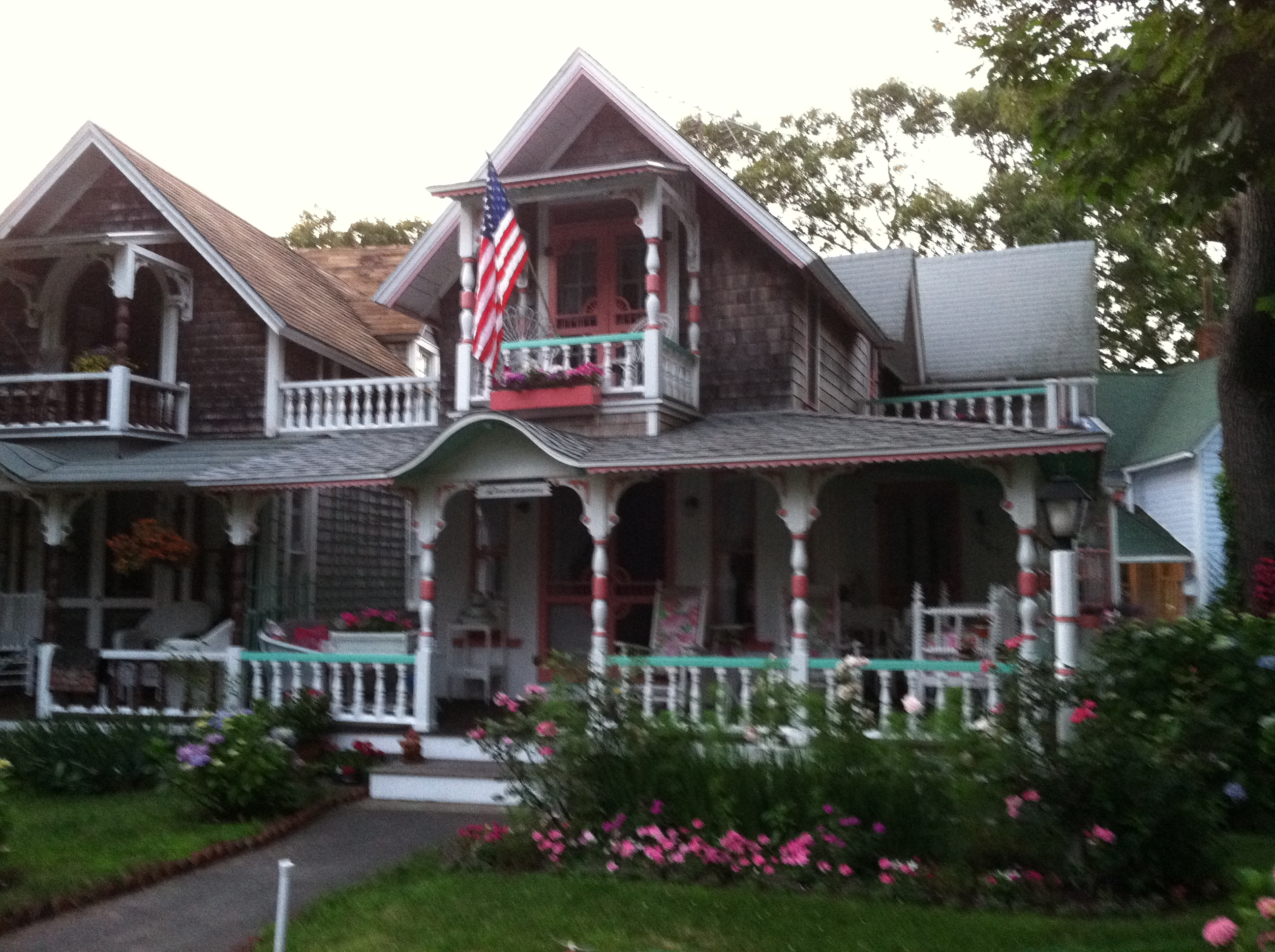 We spent a lot of time relaxing. The island is fairly small, about 25 miles across as far as I know, but there are several different towns. We visited most of them within the first two days, to get an idea of places we wanted to visit again, and scope out the different beaches. Oak Bluffs, where we stayed is famous for the gingerbread cottages. People used to literally camp out in that area for religious revivals. Eventually they built a permanent place of worship and permanent houses. The houses have a lot of character and are really big out by the waterfront, but very tiny and close together built in concentric circles around the Tabernacle. We wound up their on our last night, due to a wrong turn, and it was sort of magical. Tiny little storybook cottages, at dusk, all decorated with fancy colors and trim. Adorable porches and lovely landscaping. Some even had kerosene lanterns (which I was told have caused fires in the past).